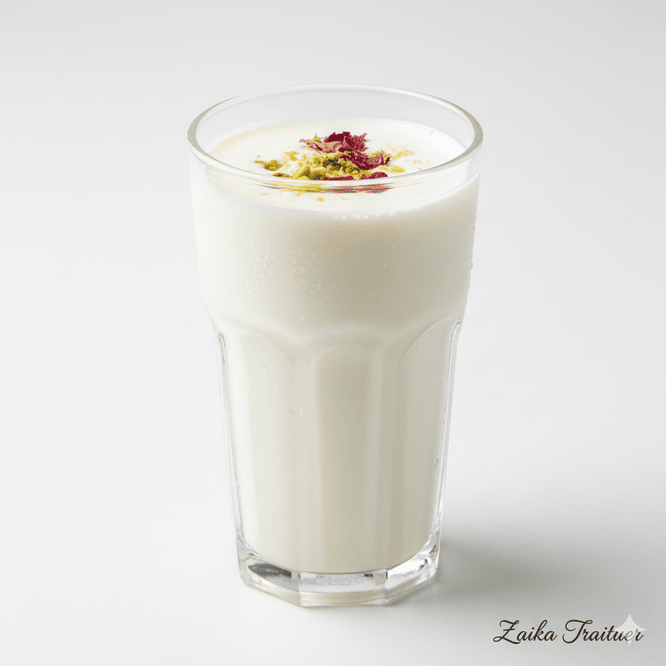 Notre Lassi Sucré est une boisson onctueuse et veloutée, pilier de la tradition indienne. Préparé maison à partir de yaourt brassé frais, il est délicatement sucré et parfumé avec une touche de cardamome ou d’eau de rose (selon notre recette secrète).